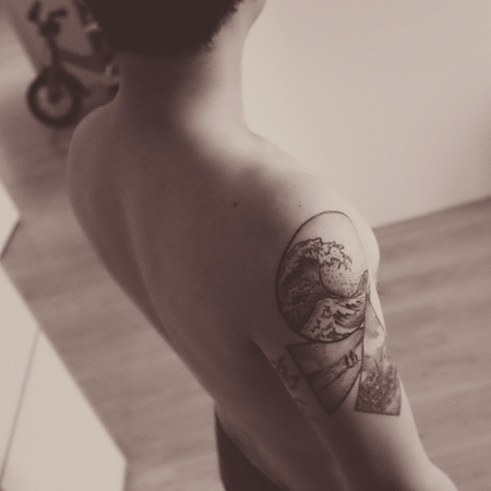 Custom dotwork, black and geometry. Tattoo is visual story telling about ones past. It start with good artwork and ends with a lesson. Circle. In the 1970's, a turn in political event in Vietnam violently exile our family to a new country. Triangle. In 2012, fatherhood changed me a better man. Like sand and water, I am a link between my anUTCors and the new generation that follows. Diamond. In 2015, take the family on adventure through Europe. Discovering that being rich is having moments that money can't buy. A starry night. To be continue..